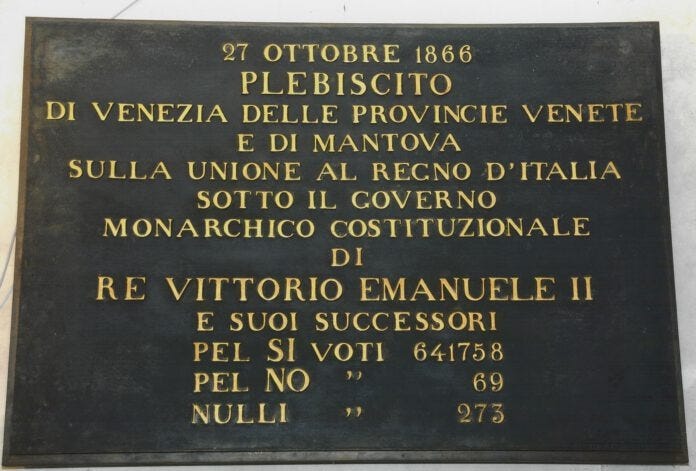 It has now been 159 years since the infamous plebiscite that condemned us to become part of the italian state. The more time passes, the more we realise that the vote (supposedly) cast by Venetians was not the true will of the people, but rather a fraud organised and managed down to the smallest detail.