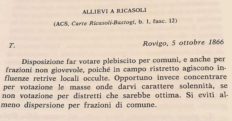Now imagine if every municipality in Venetia, large or small, had sent such instructions to its parish priests in order to steer the outcome of the vote towards a resounding success with overwhelming percentages in favour of annexation to the Kingdom of Italy. Today, we would consider such votes to be those of a country under dictatorship.
