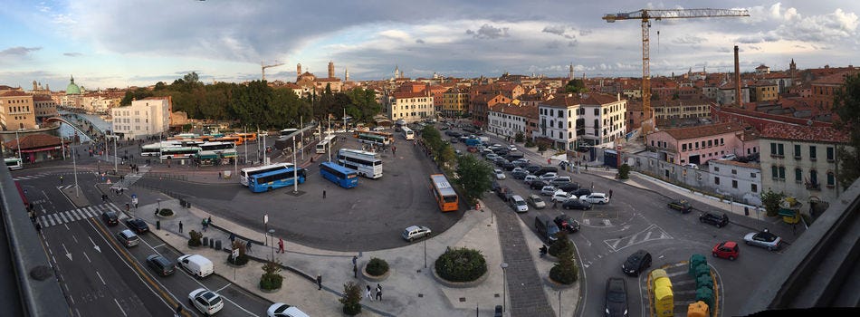 The gateway to the city is no longer the columns of St. Mark’s Square, but the modest San Giobbe station, built in the cramped space near the church of the same name.