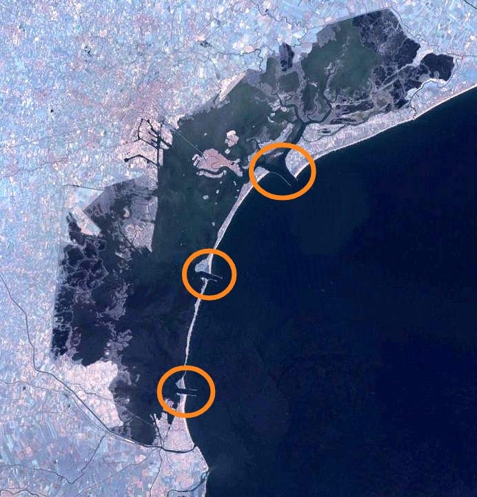 The infrastructure consists of 78 floodgates installed on the seabed at the three port entrances - Lido, Malamocco and Chioggia - which regulate the exchange between the lagoon and the Adriatic Sea. Under normal conditions, the floodgates remain invisible, lying on the seabed and filled with water. However, when tides of over 110 centimetres are forecast, the gates are filled with air, raised and used to temporarily isolate the lagoon from the sea. The project stems from the lessons learned following the dramatic flood of 4 November 1966, when Venice was submerged by a 194 cm tide, highlighting the inadequacy of local defence measures.