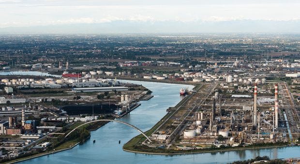 Porto Marghera is probably the most important legacy of Volpi’s Greater Venice vision, since it’s the engine room of the city’s economy on the mainland. Having rebranded from petrochemicals to logistics, heavy industry and ‘green’ retooling, it is home to Eni’s biorefinery (with an output of approximately 0.4 Mt/year) and Versalis’s 2025 recycled-plastics plant. However, it still falls within the SIN Venezia-Porto Marghera remediation regime. Meanwhile, port logistics are being upgraded, with new electric yard cranes set to be installed at PSA Venice–Vecon by late 2025.