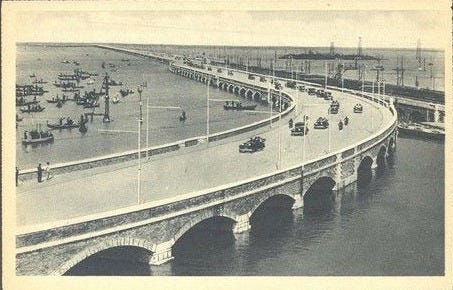 The second major wave of infrastructure development designed by Miozzi is tied to motorisation. Between 1931 and 1933, the road bridge across the lagoon was built and inaugurated as the Ponte Littorio (Littorian Bridge) in 1933, later being renamed the Freedom Bridge after World War II. This road bridge runs alongside the railway, consolidating everyday terrestrial access and increasing the city’s entry capacity for private vehicles and public transport.