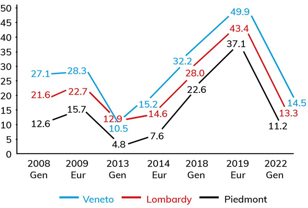 The results of the Veneto regional elections will decide the future not just of Lega, but of italian politics, and not only in the short-term (potentially breaking the governing coalition) but also on a longer time scale because they take place in a period of transition for all the most relevant political parties in Veneto - the end of the “Zaia era”.