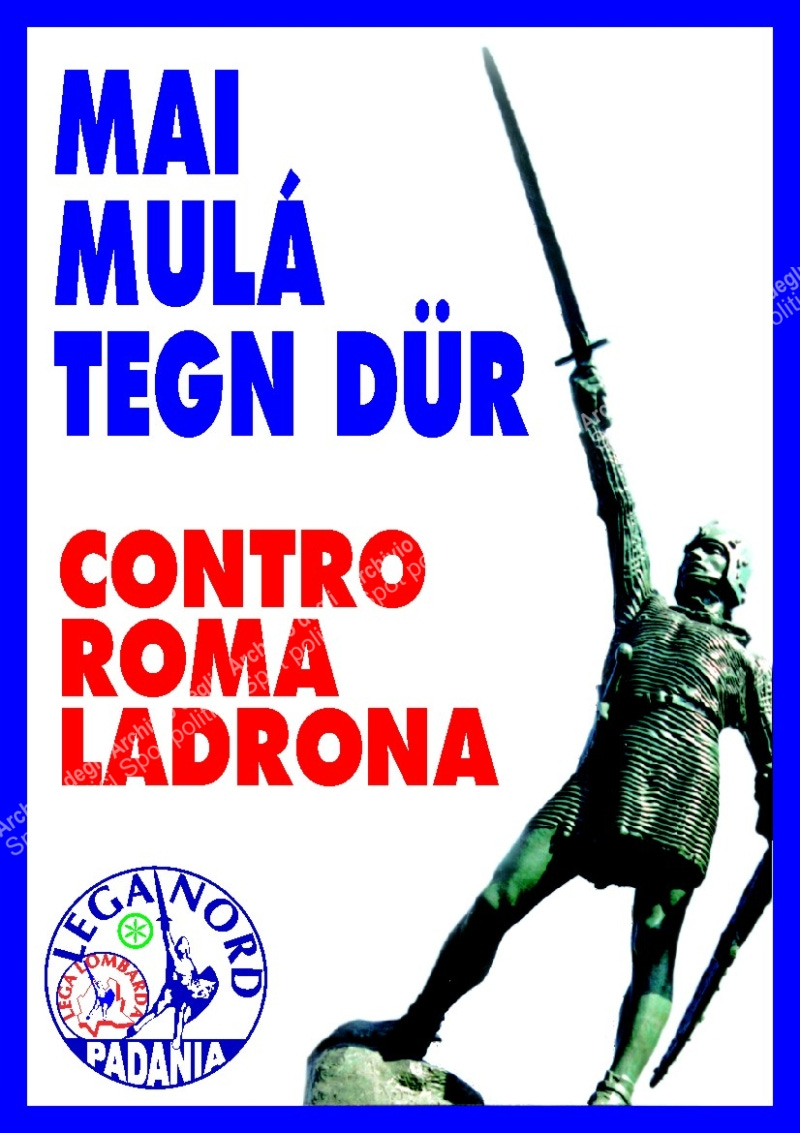 Its rhetoric cast “Roma Ladrona” (“Rome the big thief”) as an extractive oppressor of Northern taxpayers, portraying Southerners and the italian state bureaucracy as freeloaders holding back the industrious North through the extraction and redistribution of tribute without a corresponding supply of services.