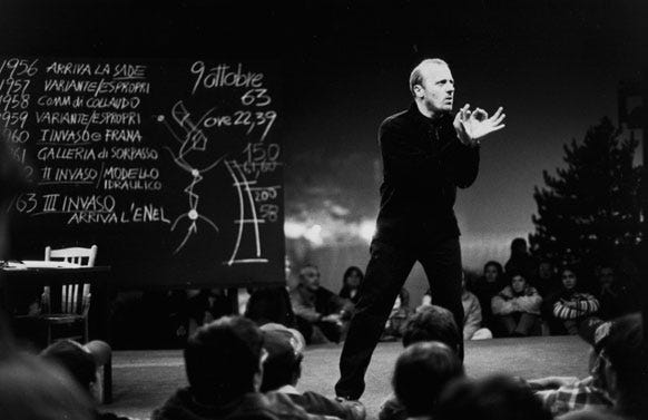 In 1997, actor Marco Paolini rekindled interest in the Vajont affair, which had gradually waned in previous years, through a television show, the script for which was based on Tina Merlin’s book and shared its militant content, albeit in a more balanced way. A speech, a fictionalised account of the story designed to capture the viewer’s attention, objectively enjoyable and artistically successful.