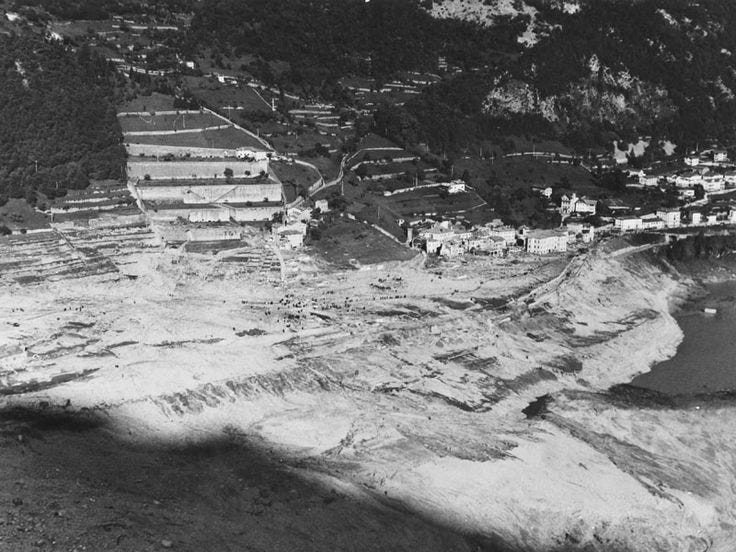 The widespread belief in the valley, or at least what transpires from Merlin’s articles prior to 1963, was, in short, that with the creation of the artificial lake, the water would erode the banks, causing the village of Erto to collapse into the lake.