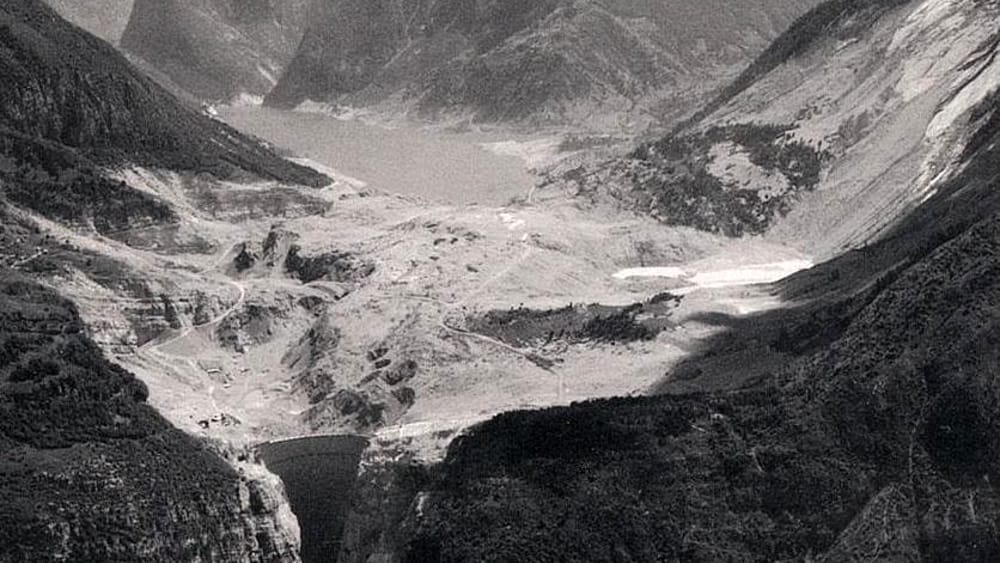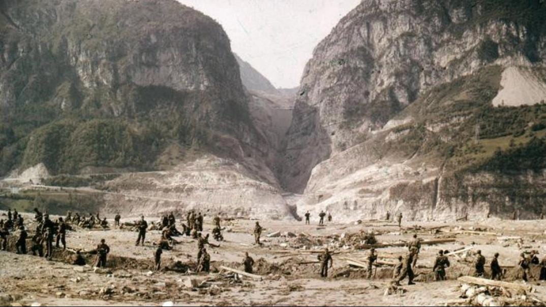 At 10.39 p.m., the ‘great landslide’ collapsed. In 20 seconds, what turned out to be 270 million cubic metres of rock descended towards the lake, which was located at an altitude of 700 metres above sea level.