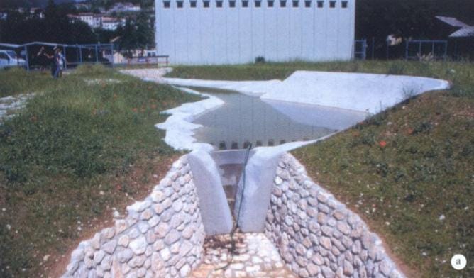 At the same time, he commissioned the Institute of Hydraulics at the University of Padua, directed by Professor Augusto Ghetti, to construct a 1:200 scale physical-hydraulic model of the artificial lake area in order to conduct experiments simulating the effects of the collapse of the ‘great landslide’ on the plant and the adjacent villages. The experiments took place from August 1961 to April 1962 and consisted of dropping a mass of gravel bags, which were supposed to simulate the mass of the ‘great landslide’, into a scale model of the artificial lake, and then measuring the height of the wave that was generated and its effects on the surrounding environment.